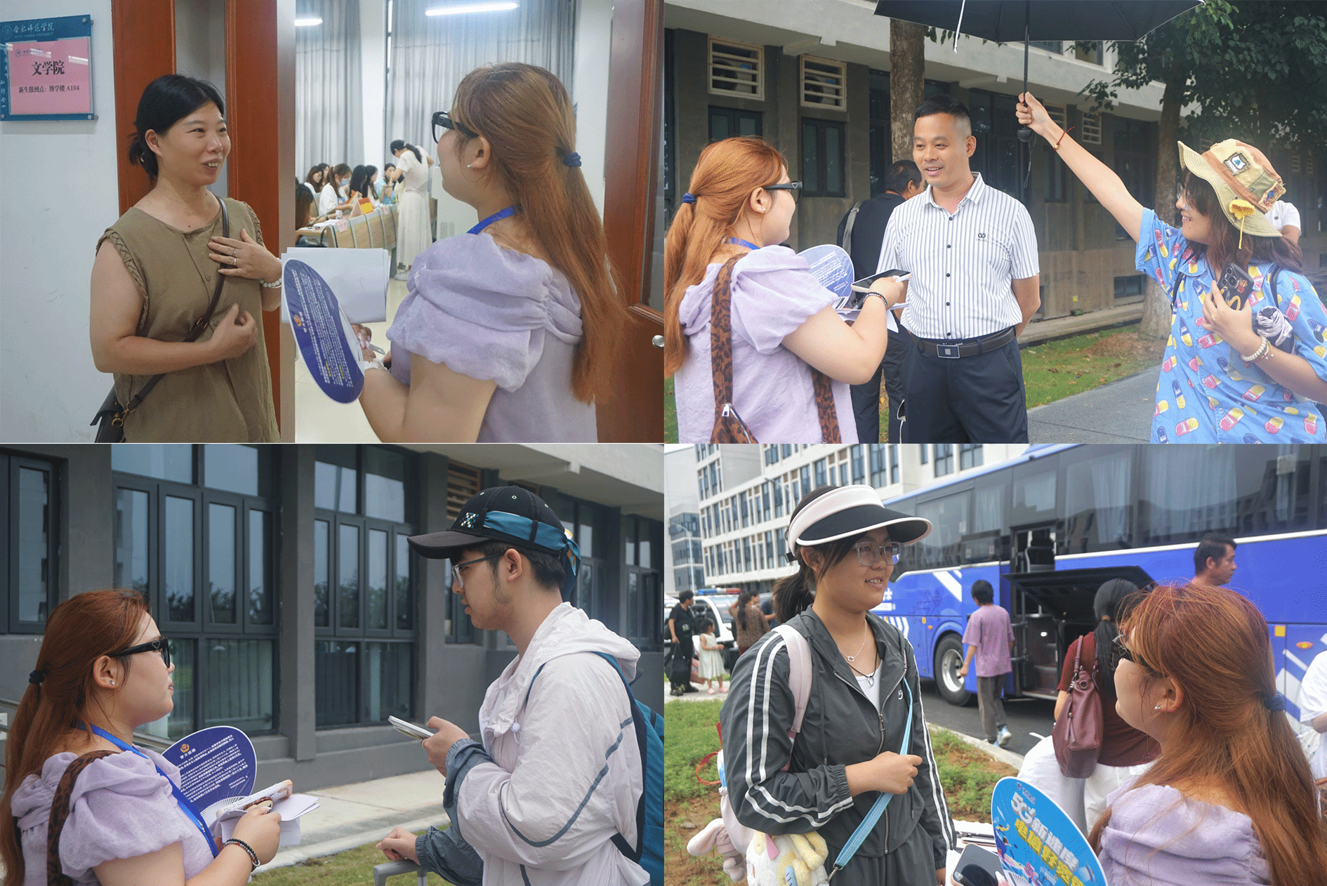 为定格新生与文院的“第一次美好相遇”,学院专门安排了采访团队。采访人员手持设备穿梭在校园各处,镜头精准捕捉新生脸上的好奇与期待,麦克风仔细收录家长的嘱托与期许。镜头前,新生们难掩激动,分享着“终于踏入心仪大学”的喜悦;家长们语气温柔,诉说着“希望孩子在这里成长蜕变、丰富自我”的心愿。轻松的对话不仅拉近了与新生的距离,更让初来乍到的学子在欢声笑语中卸下陌生感,真切感受到“被欢迎、被重视”的温暖。