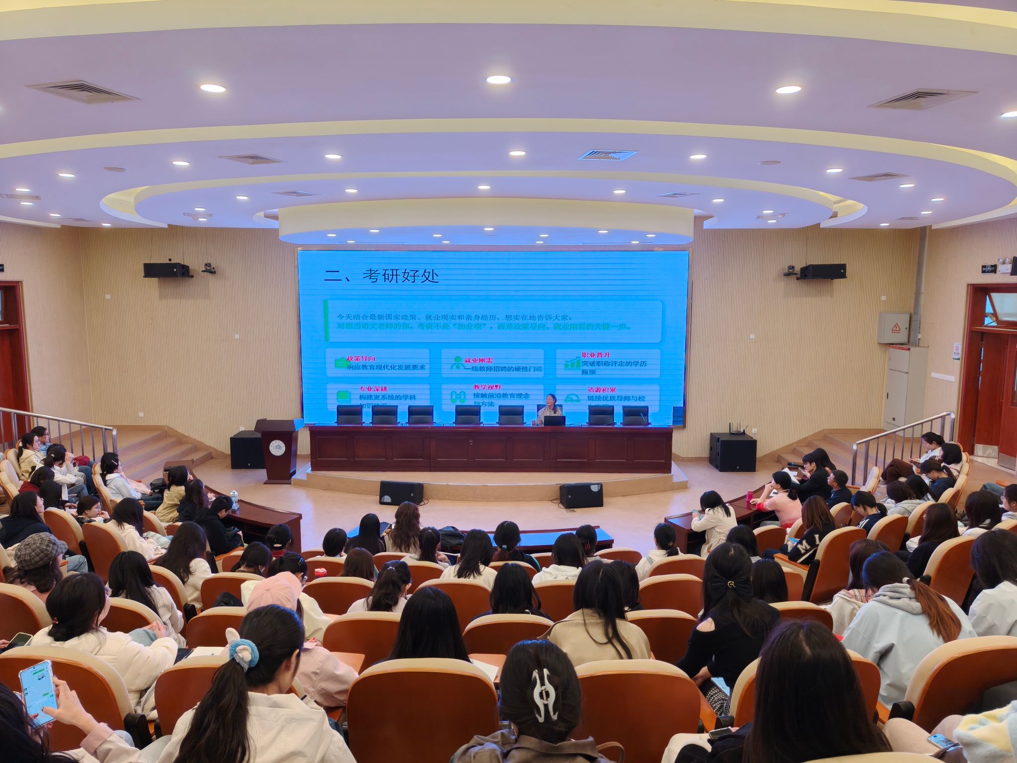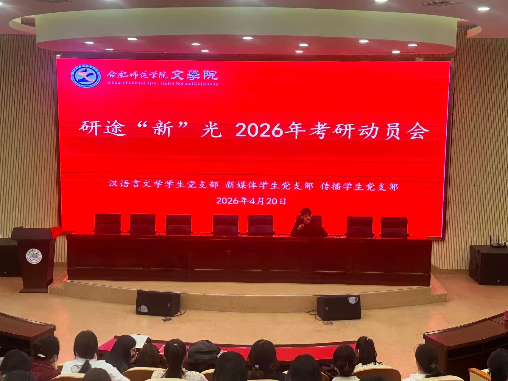 为精准助力2023级学子明晰考研方向、提振备考信心、科学规划升学之路,4月20日,Bwin必赢网址于滨湖校区铭传楼学术报告厅召开研途“新”光2026年考研宣讲动员会。本次活动由汉语言文学学生党支部、新媒体学生党支部、传播学生党支部、研究生党支部联合主办,Bwin必赢网址党委书记许锃,党委副书记、纪委书记夏娟,辅导员李娟、疏淑进、潘文峰,全体2023级学生到场聆听宣讲会。