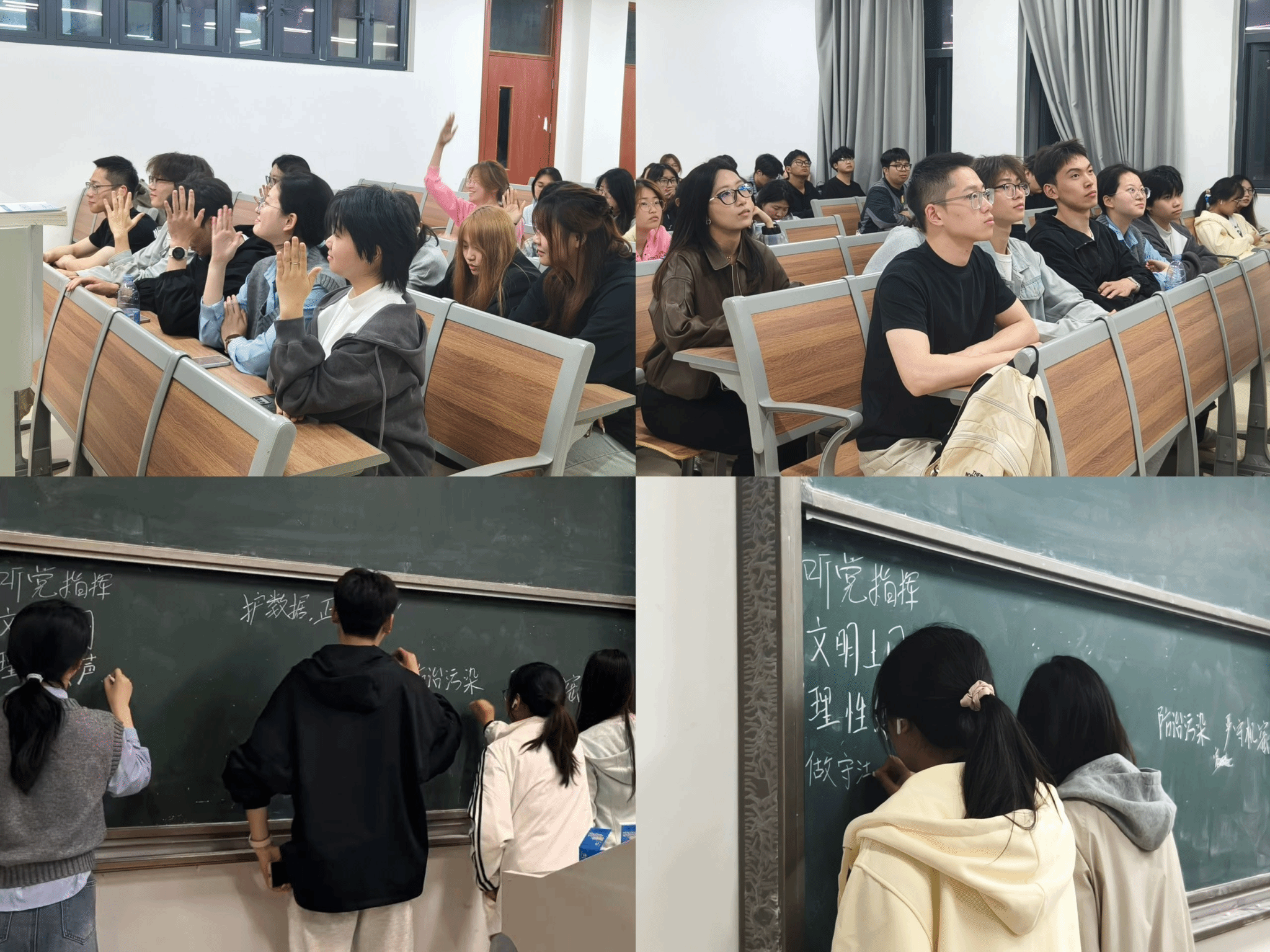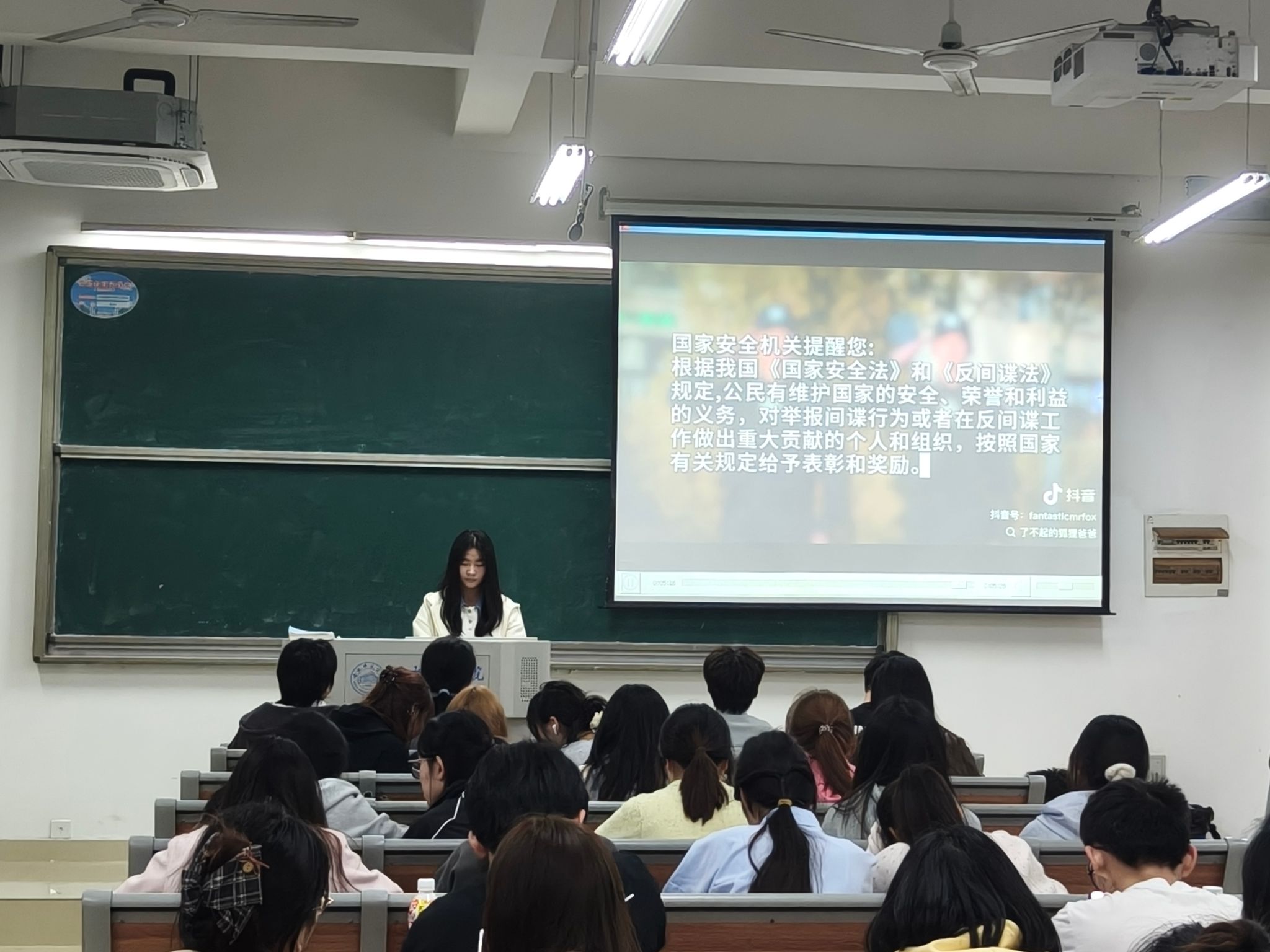 为巩固学习成果,活动还设置了国家安全知识互动问答环节,围绕全民国家安全教育日、危害国家安全行为的识别与处置方式、国家安全涵盖的重点领域,以及青年在日常生活中维护国家安全的具体举措等核心问题发起提问。现场气氛热烈,同学们积极思考、踊跃作答。在紧张而活跃的交流与思辨中,学生对国家安全知识的理解得以深化,国家安全防范意识与辨别能力得到切实增强。