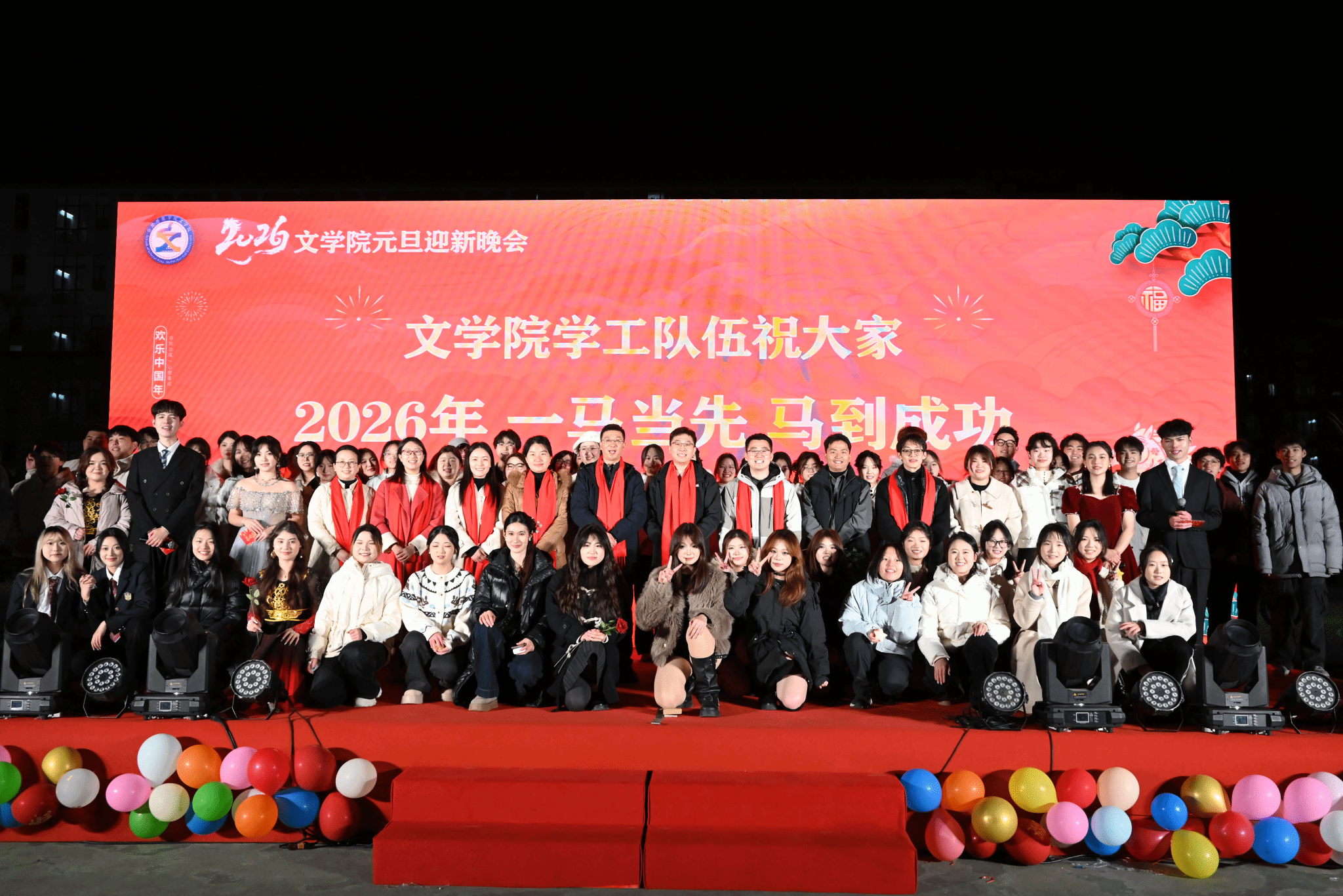岁律更新,春祺已至。12月28日,Bwin必赢网址2026年元旦迎新文艺晚会在滨湖校区篮球场温情启幕,晚会以“文澜承雅韵 骐骥跃新程”为主题,六百余师生共同欢聚,在辞旧迎新的美好氛围中,共赴一场兼具文化底蕴与青春活力的视听盛宴,定格属于文院人的跨年记忆。