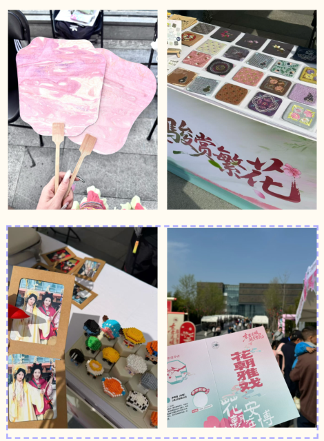 活动现场,Bwin必赢网址学子精心筹备的原创文创、手工作品惊艳亮相春日市集,造型精巧、兼具文化元素的作品吸引了大批游客驻足参观、互动体验。学院网络与新媒体专业学子主动担当,发挥专业优势为现场人员提供全程专业摄影服务,用镜头捕捉花朝雅韵、定格活动中的精彩瞬间,为参与者留下了珍贵的影像记忆。在面塑、糖塑、水墨染扇等非遗手工体验环节,同学们满怀热忱、认真钻研,亲手操作、亲身感受,在指尖的灵动中体悟传统手工艺的匠心与温度,近距离领略非遗文化的独特魅力。