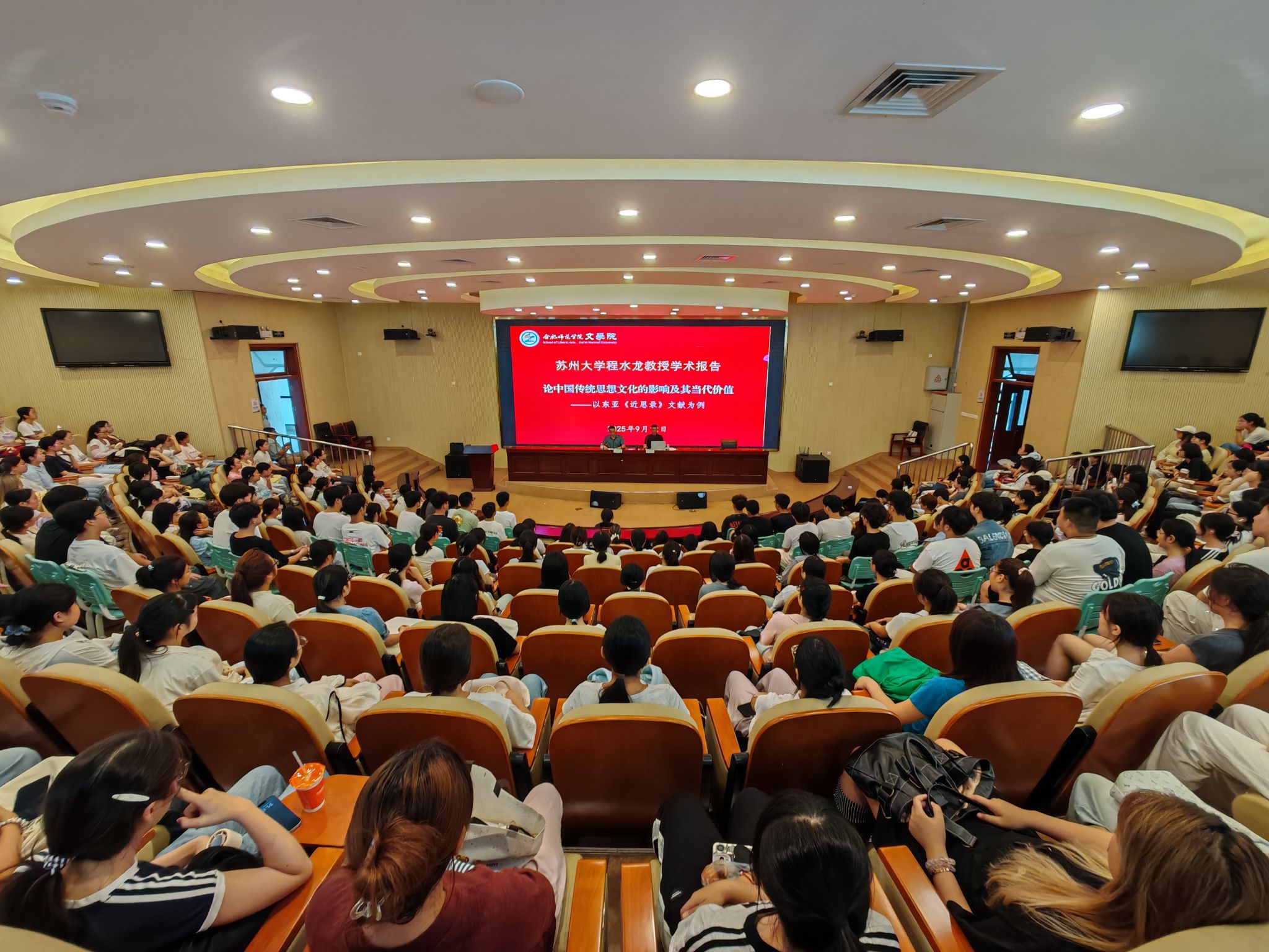 9月12日,Bwin必赢网址新学期“经典阅读”讲坛在滨湖校区学术报告厅开讲,Bwin必赢网址1998届汉语言文学专业校友、苏州大学程水龙教授,以“论中国传统思想文化的影响及其当代价值——以东亚《近思录》文献为例”为题作学术报告,以一部跨越千年的朱子学经典为切口,为现场300余名师生展开了一场关于中华文明连续性与文化自信的深刻对话,拉开Bwin必赢网址70周年校庆系列学术活动的序幕。报告会由Bwin必赢网址院长何旺生教授主持。